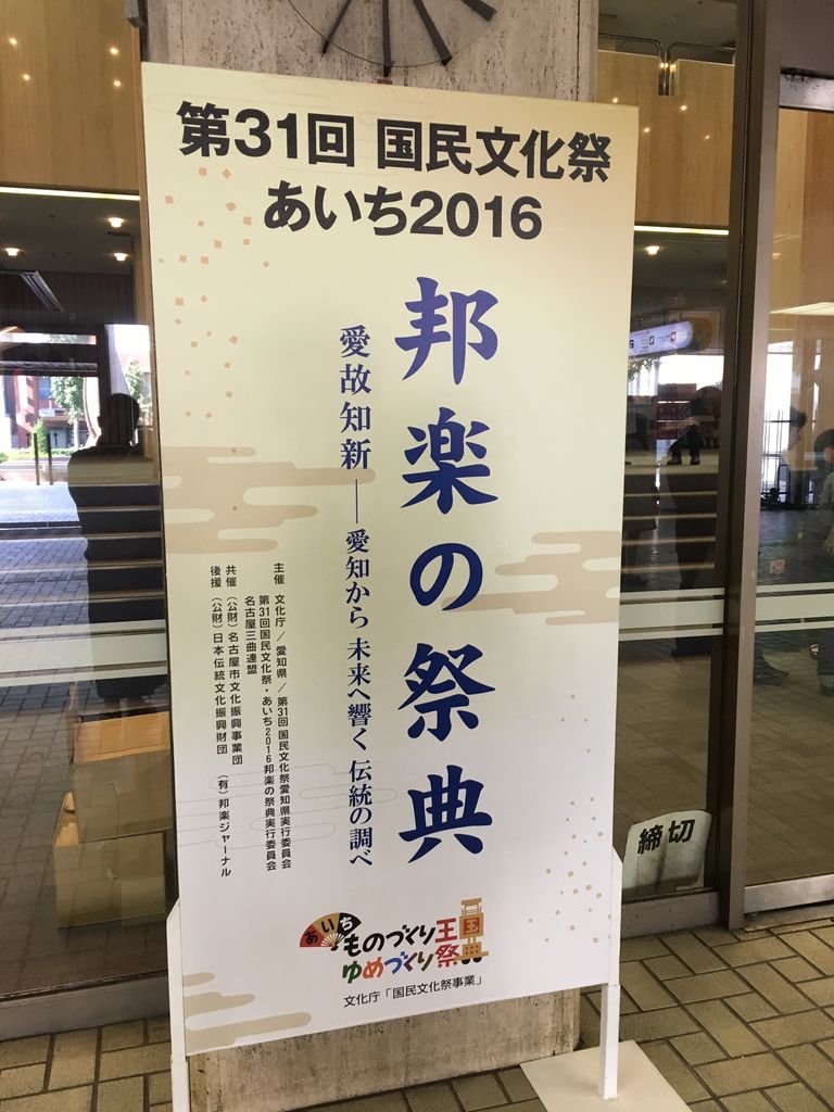 前回のブログでお知らせした通り、「国民文化祭あいち2016」の一環として11月3日に開催された「邦楽の祭典」に出演してきました。