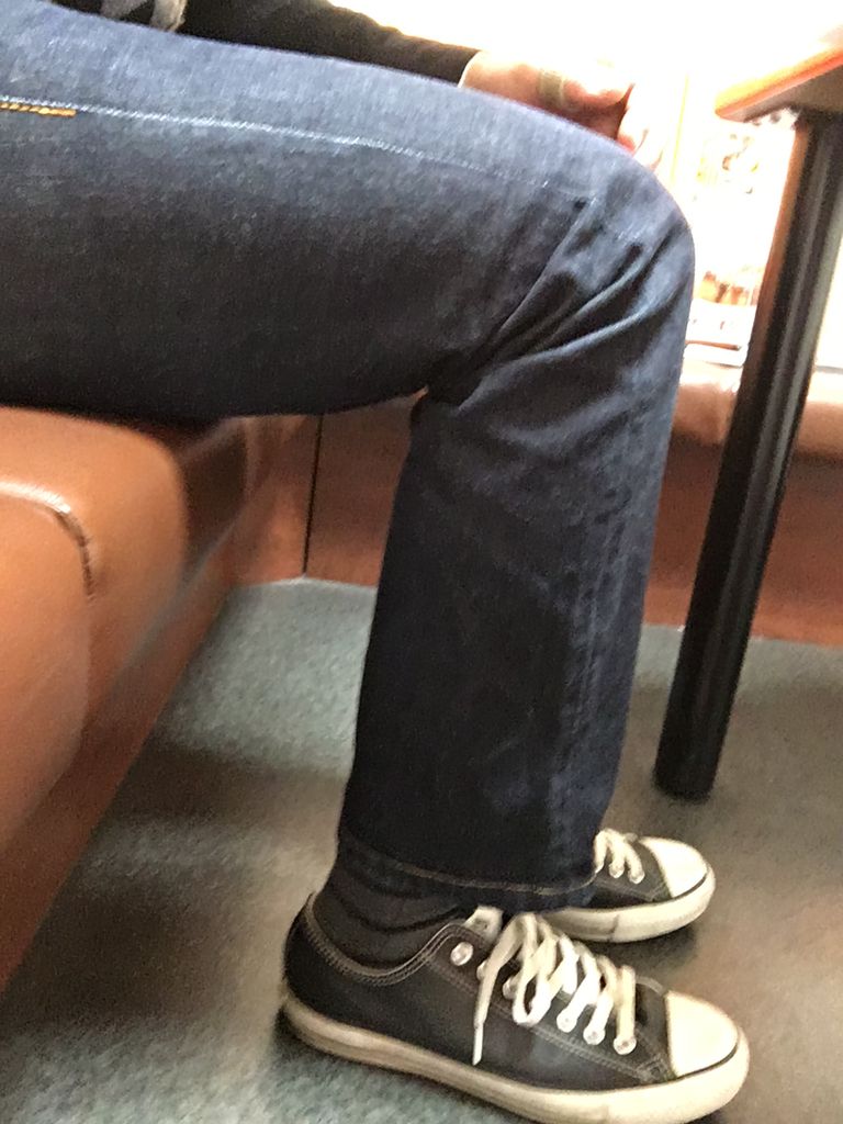 普通に座ると、ちょっと高いので、足を少し手前に引き、膝の高さを低くする様にすると、ちょっと良い感じ。