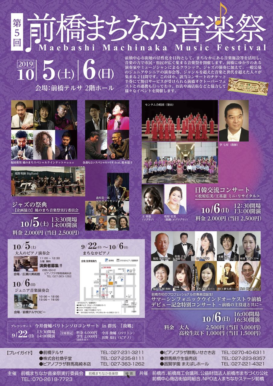 この、「前橋まちなか音楽祭」ですが、前橋市ゆかりのプロの演奏家を中心とする多彩なコンサートを開催し、音楽の力で前橋のまちなかに沢山の人に来てもらおう!という主旨の音楽イベントです。