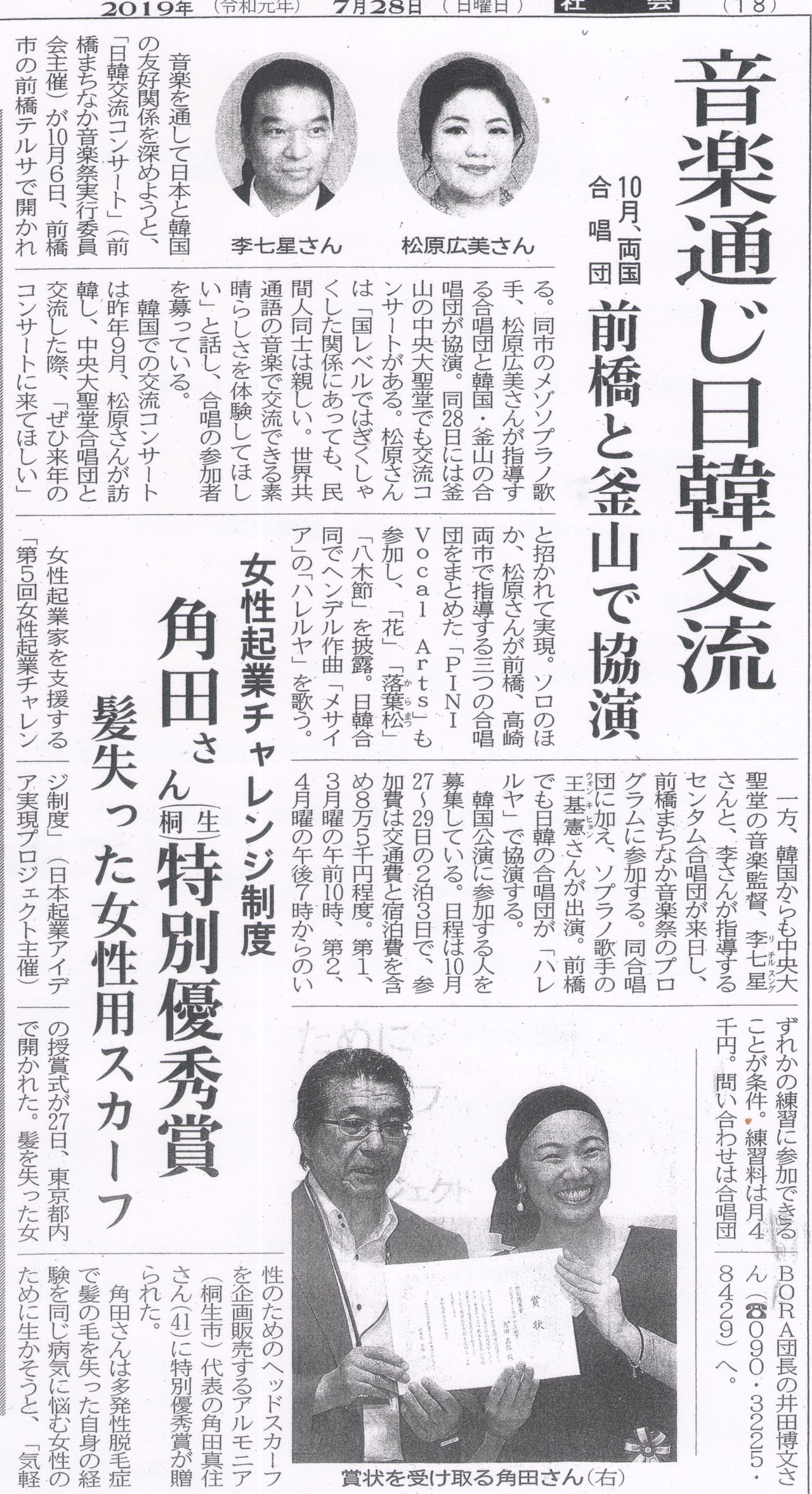 日韓交流コンサートと、サマーシンフォニックウインドオーケストラ前橋のコンサートが初めての企画となり、日韓交流コンサートは声楽のコンサートで、サマーシンフォニックは吹奏楽となります。