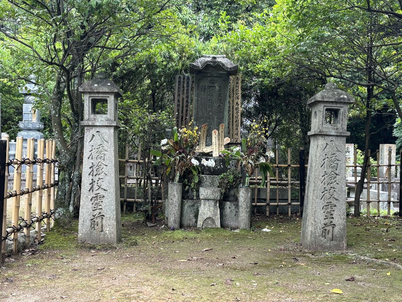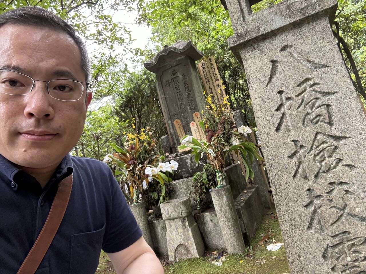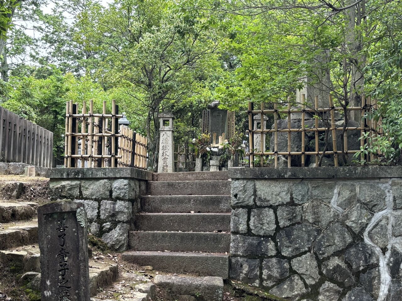 無事にホテルにチェックイン。時間がもったいないので、休む間もなく外出。まずは、今の箏曲の元祖である八橋検校のお墓参りに、「金戒光明寺」を訪問。いはば聖地訪問です。かなり階段を上がったところにある塔の裏に、お墓を発見。隣はなんと、清和天皇が火葬された場所で、そこだけは宮内庁が管理しています。八橋検校のお墓参りをし、芸道精進を誓いました。