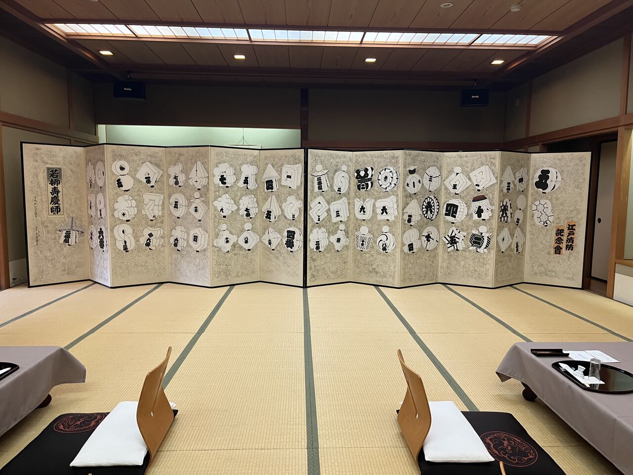 お座敷にこんな屏風が置いてあり、屏風が外されると私がいて、演奏が始まるという感じです。
