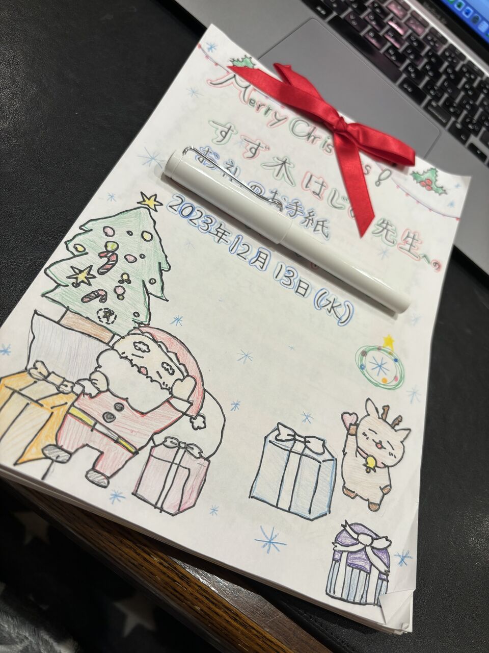 また、クリスマス時期と重なったこともあり、色鉛筆でカラフルに色をつけてくれて、みていてとっても楽しいです!