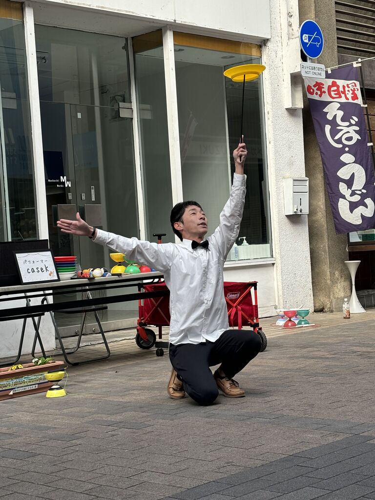 みなさんのパフォーマンスは、私が見ても楽しかったですし、コマ回しは沢山のお子さんが体験をしていました。なので、ご家族連れでいらっしゃっても、みんなが楽しめます。