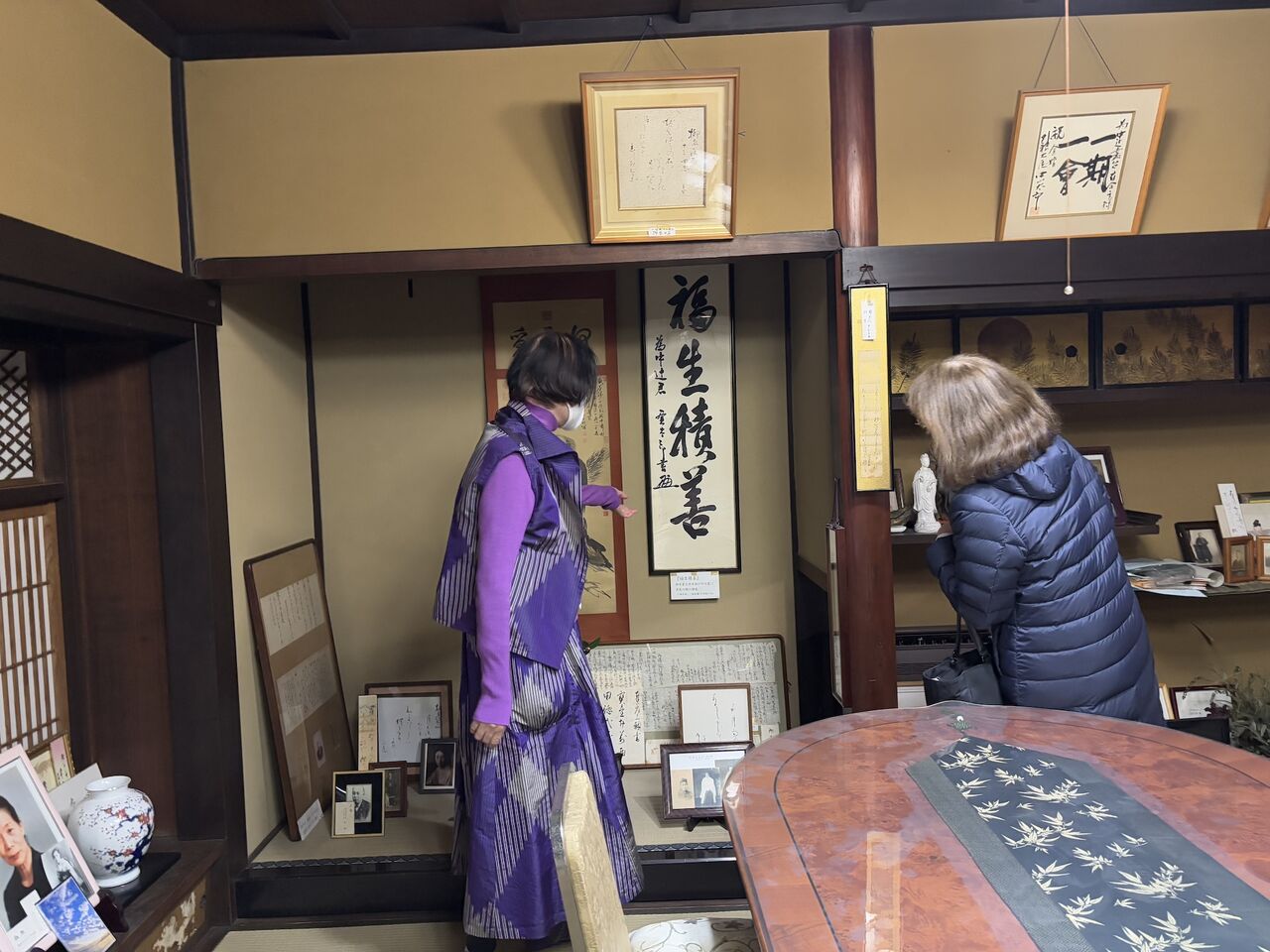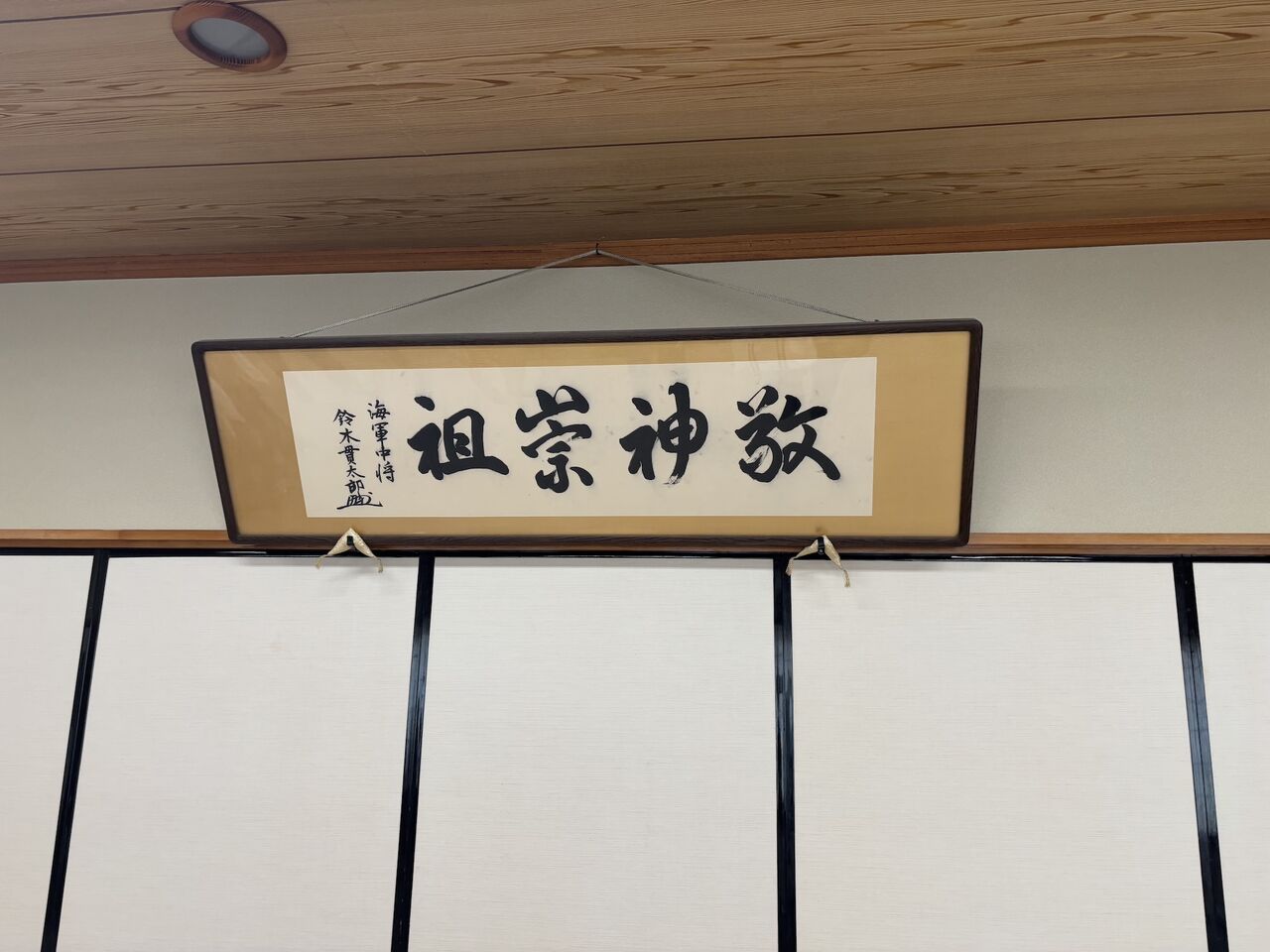 そして、社会福祉法人福生会を訪問。ここは、鈴木貫太郎のお父様が代官を務めていた地域の庄屋さんである中辻家が運営している社会福祉法人で、天保年間の建物が今でも残っています。実は、その建物の中で貫太郎は生まれたという説もあります。また、「福生会」という名前は、貫太郎が中辻家に贈った揮毫「福生積善」からとったということです。