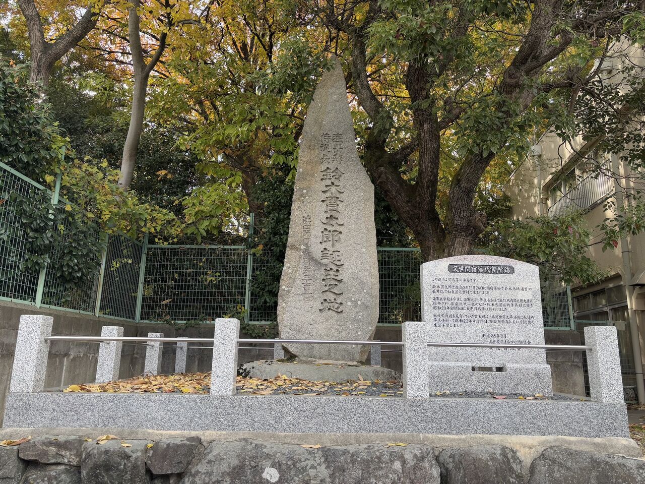 そして最後は「鈴木貫太郎生誕の地」の石碑訪問です。福生会から徒歩で数分のところにあり、この碑の建立者は中辻家の方で、中辻家と鈴木家の結びつきの強さがよくわかります。また、この碑は昭和4年に建てられたのですが、平成28年に一部改修工事が行われていて、いまでも地域で愛されている様子が伺えました。