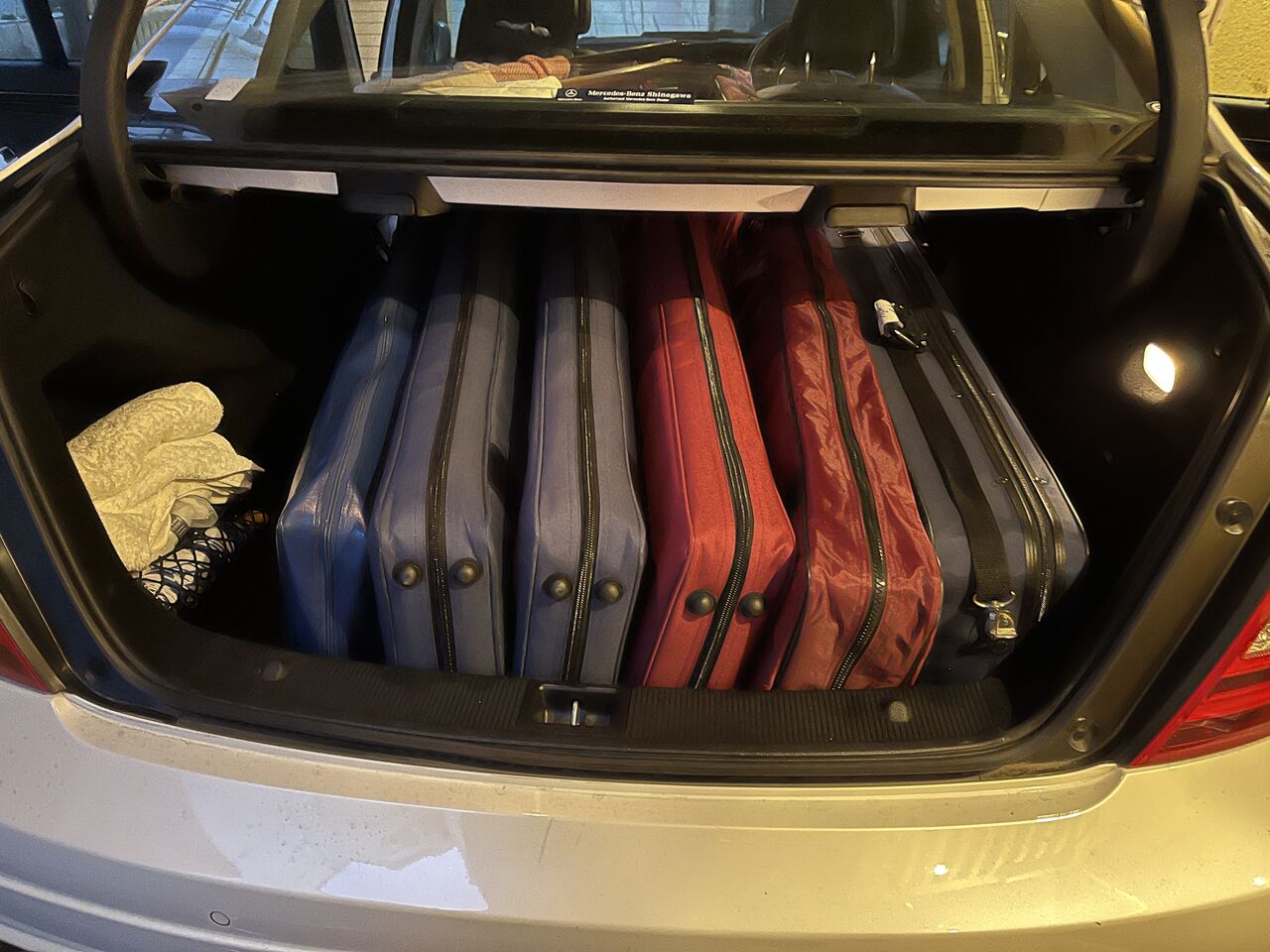 今日、お箏をたくさん運ぶ必要があり、おそらく私の車に乗せられるであろう、最大の面数を載せてみました。