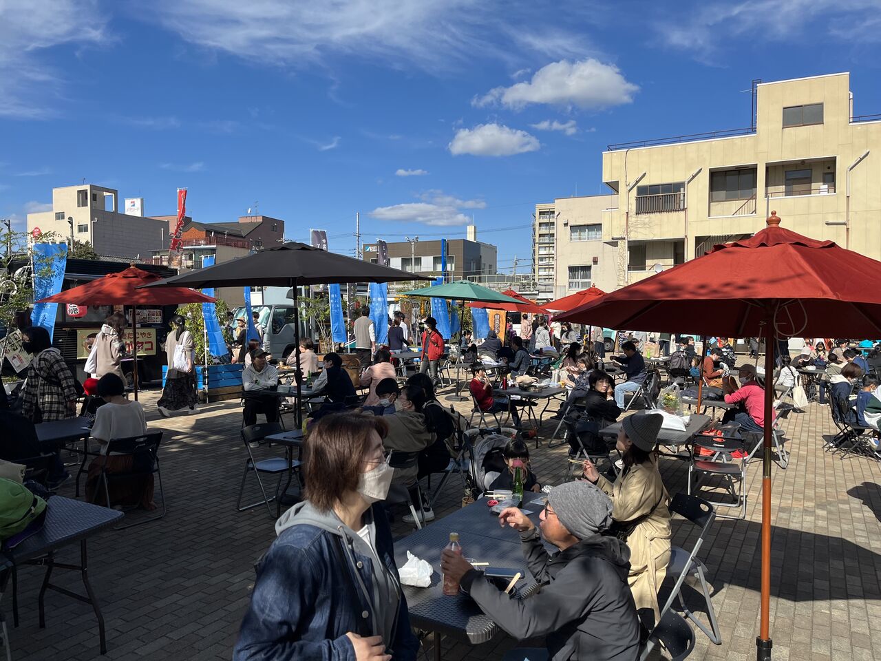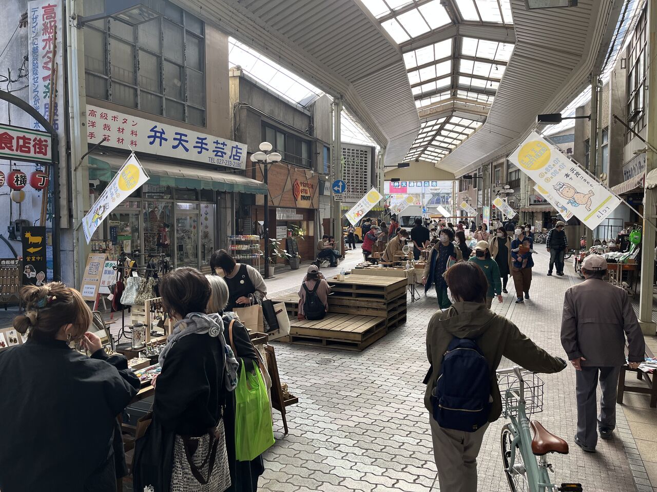 中央通り一面に本が並び、中央イベント広場にはキッチンカーが。弁天通りはワークショップやクラフト作家さんのお店がずらりと。